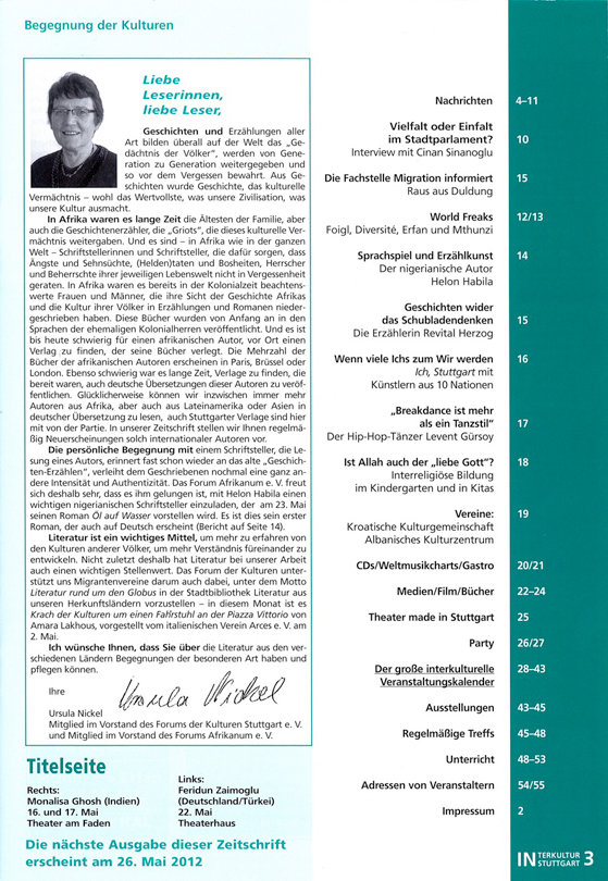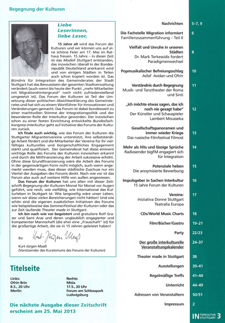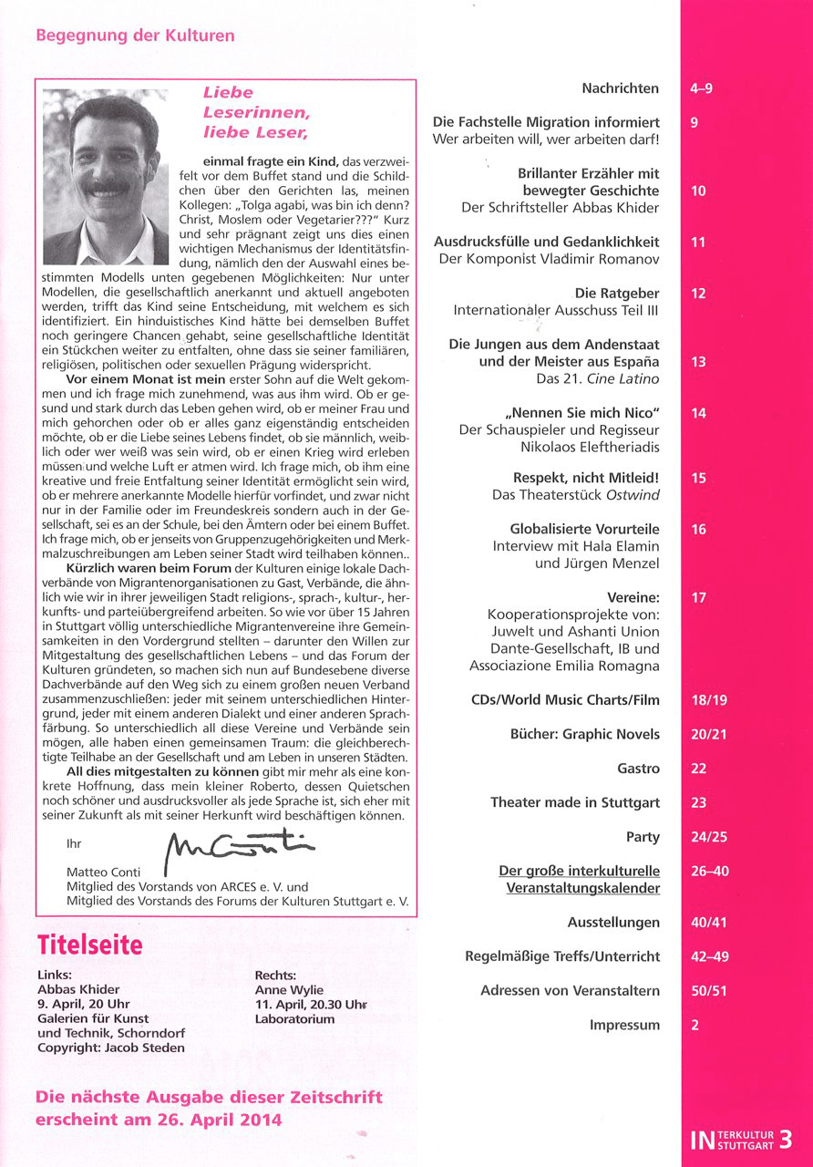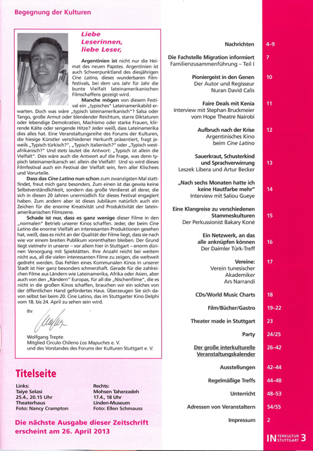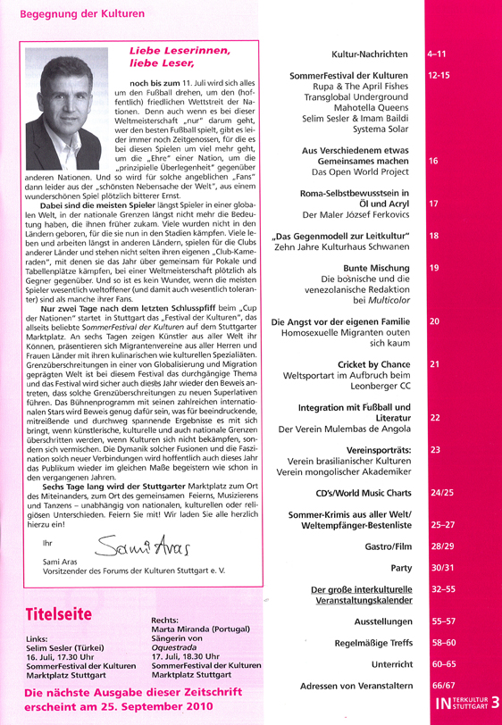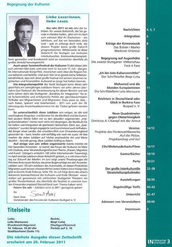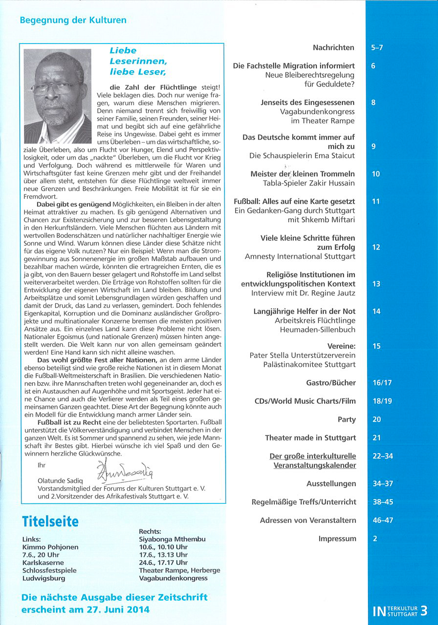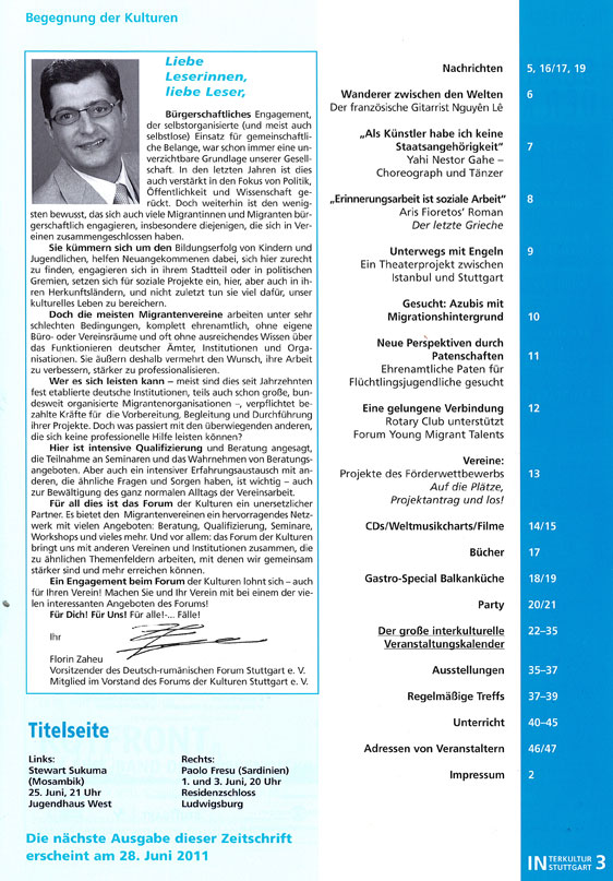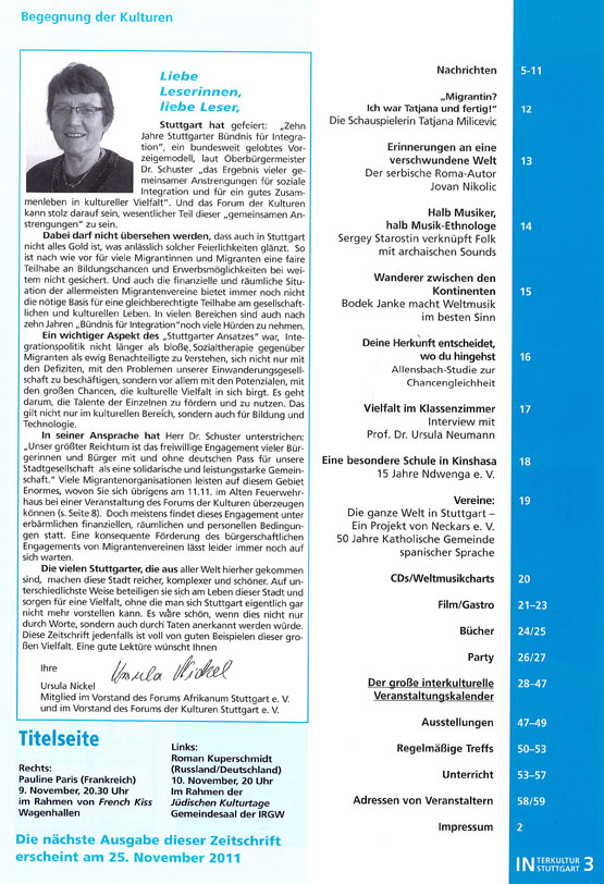 | Juni 2015 | Mai 2015 | April 2015 | März 2015 | Februar 2015 | Dezember 14 / Januar 15 | November 2014 | Oktober 2014 | Sommer 2014 | Juni 2014 | Mai 2014 | April 2014 | März 2014 | Februar 2014 | Dezember 13 / Januar 14 | November 2013 | Oktober 2013 | Sommer 2013 | Juni 2013 | Mai 2013 | April 2013 | März 2013 | Februar 2013 | Dezember 12 / Januar 13 | November 2012 | Oktober 2012 | Sommer 2012 | Juni 2012 | Mai 2012 | April 2012 | März 2012 | Februar 2012 | Dezember 11 Januar 12 | November 2011 | Oktober 2011 | Sommer 2011 | Juni 2011 | Mai 2011 | Sonderbeilage zur Jubiläumsausgabe | Jubiläumsausgabe April 2011 |