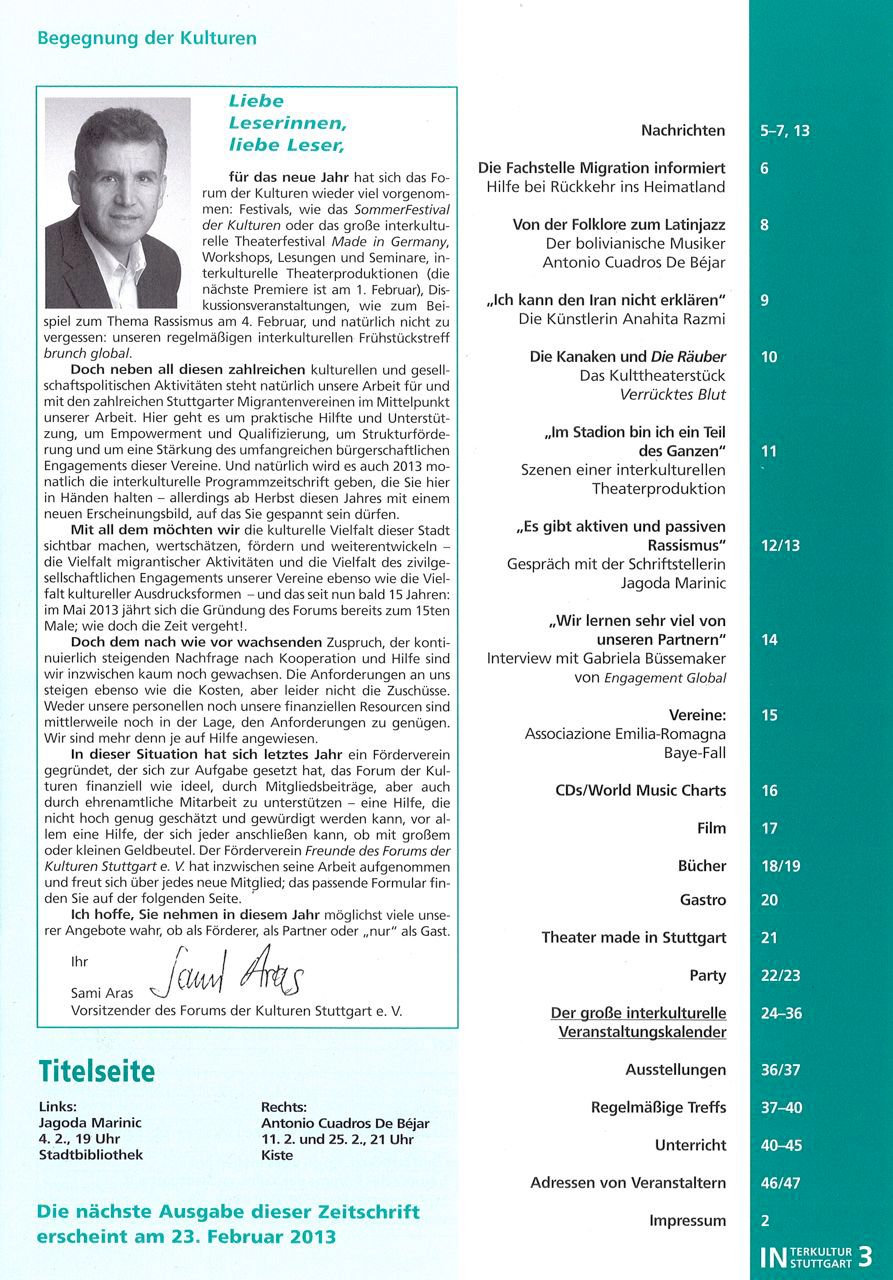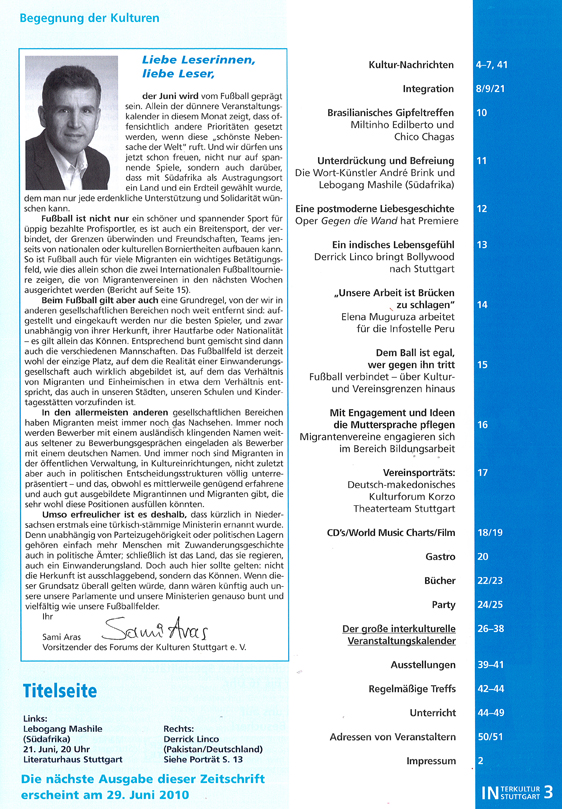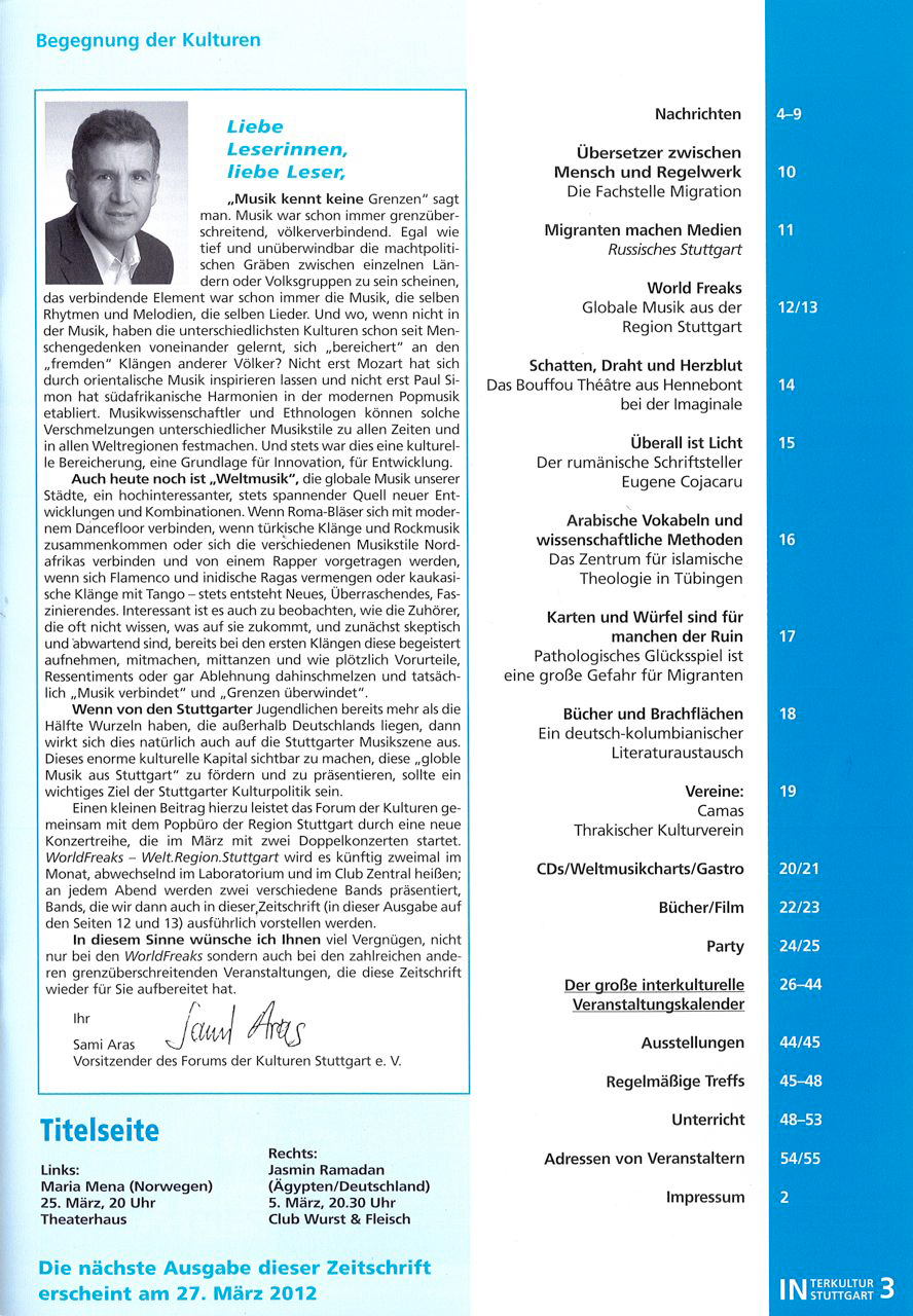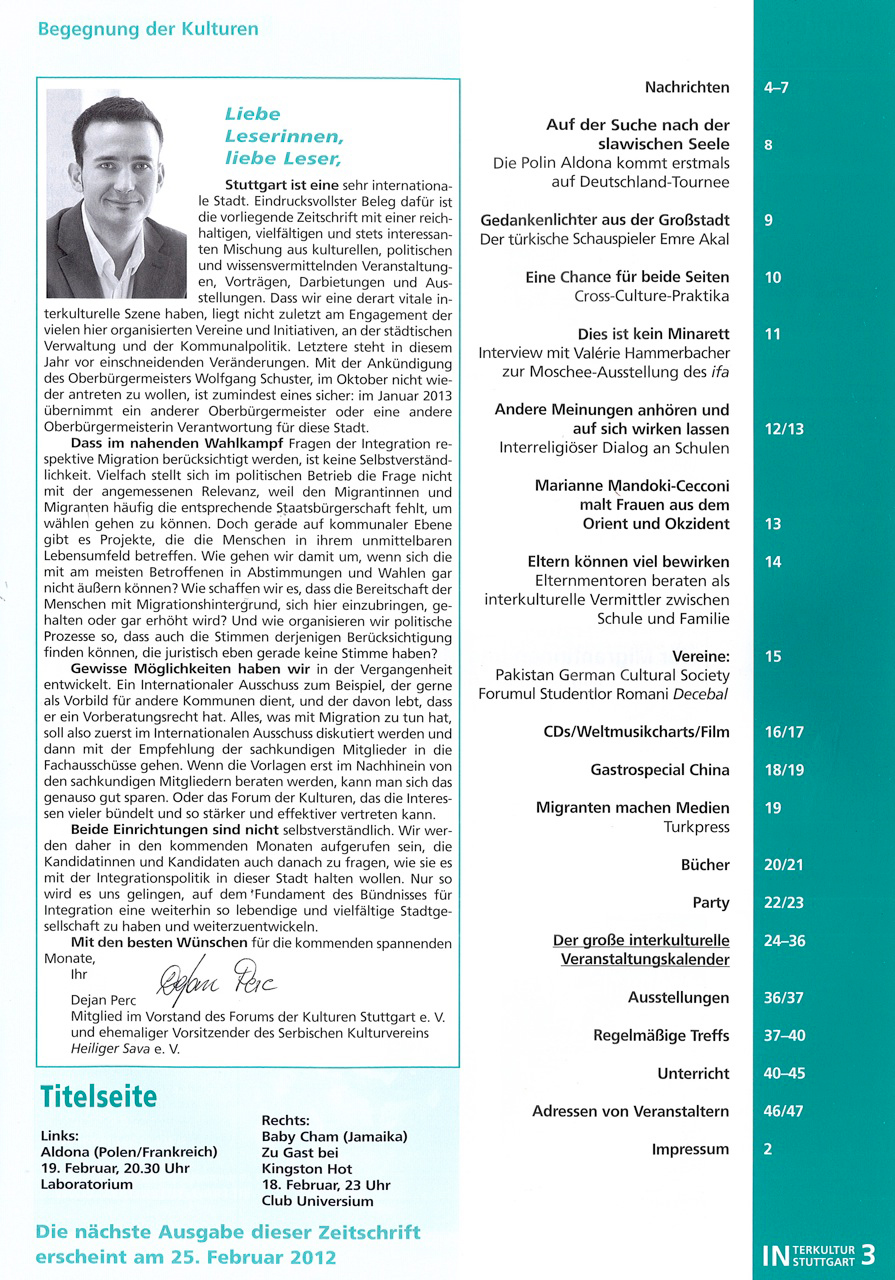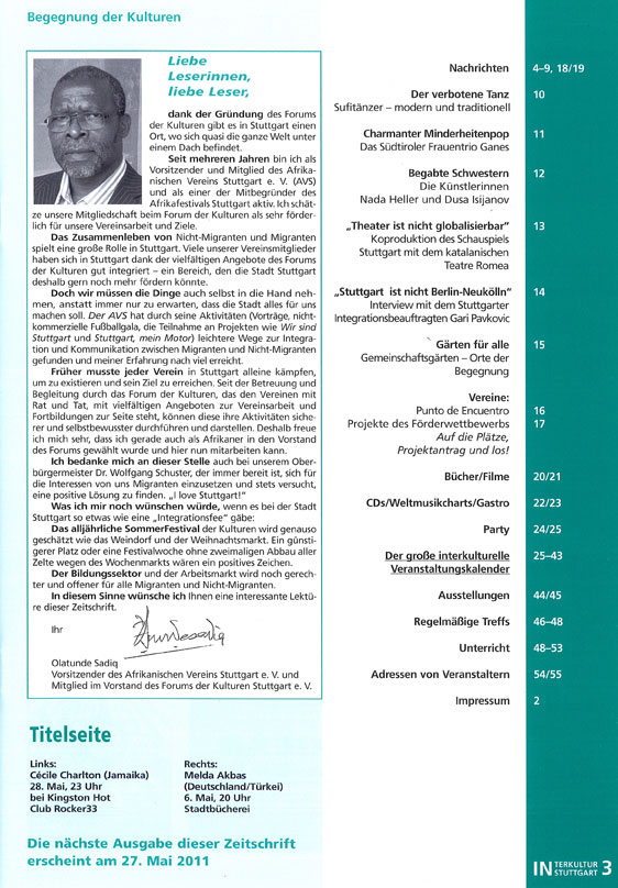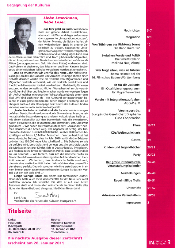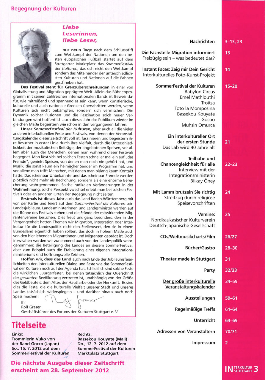 | Juni 2015 | Mai 2015 | April 2015 | März 2015 | Februar 2015 | Dezember 14 / Januar 15 | November 2014 | Oktober 2014 | Sommer 2014 | Juni 2014 | Mai 2014 | April 2014 | März 2014 | Februar 2014 | Dezember 13 / Januar 14 | November 2013 | Oktober 2013 | Sommer 2013 | Juni 2013 | Mai 2013 | April 2013 | März 2013 | Februar 2013 | Dezember 12 / Januar 13 | November 2012 | Oktober 2012 | Sommer 2012 | Juni 2012 | Mai 2012 | April 2012 | März 2012 | Februar 2012 | Dezember 11 Januar 12 | November 2011 | Oktober 2011 | Sommer 2011 | Juni 2011 | Mai 2011 | Sonderbeilage zur Jubiläumsausgabe | Jubiläumsausgabe April 2011 |