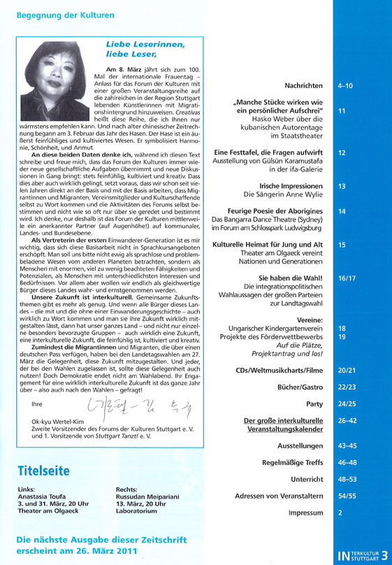 März 2011 | Februar 2011 | Dezember 10 / Januar 11 | November 2010 | Oktober 2010 | Sommer 2010 | Juni 2010 | Mai 2010 | April 2010 | März 2010 | Februar 2010 | Dezember 09 / Januar 10 | November 2009 | Oktober 2009 | Sommer 2009 |